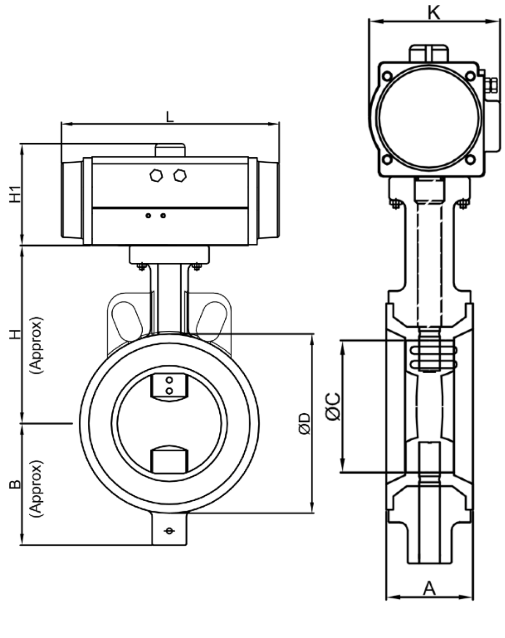 Size(mm) | A | B | ØC | ØD | H | L | H1 | K | Approx.Weight |